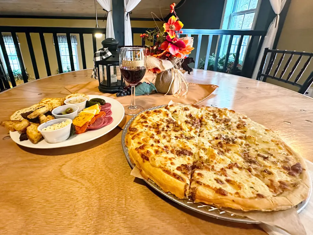 Brooks Estate Café is a relaxed, on-site spot made for lingering between tastings or unwinding after a day in the countryside. Open to the public daily at 11 AM, it’s just steps from the tasting room and a short walk from The Inn and The Manor. Settle by the fireplace or out on the porch, pair a cheese plate or light bite with your favorite FUNTIME or Classic wine, and take in the quiet of our 100-acre property. Overnight guests start the morning with a fresh-cooked breakfast and signature mimosas; later, the café becomes the easy, come-as-you-are hub for simple fare, friendly service, and unhurried conversation—true to Deer Creek’s spirit to celebrate, relax, reconnect, and rejuvenate.