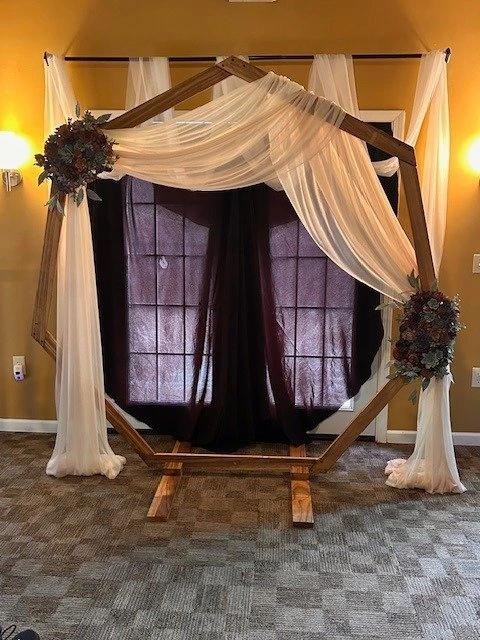 Designed for intimacy and flexibility, this rustic-yet-elegant room can be arranged to match your style — whether you imagine a romantic indoor ceremony, a joyful reception, or both.