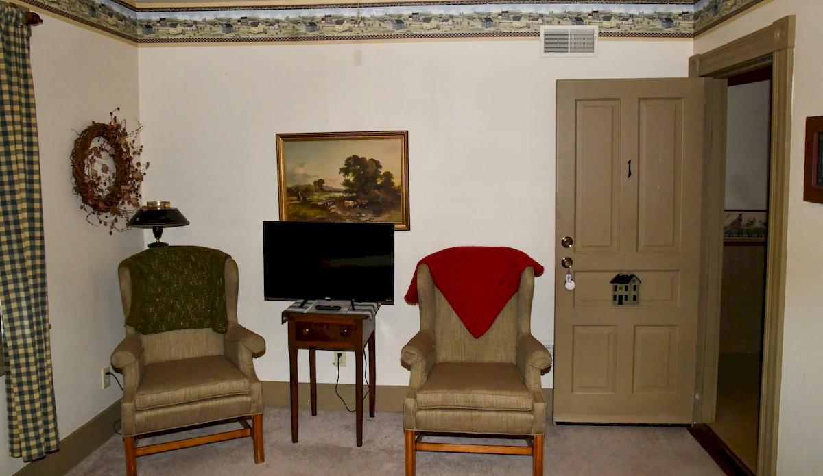 A historic, comfortable guestroom located on the ground floor in the Estate House at Deer Creek Winery’s Watson Estate. Named after the original owner of the 1769 land warrant, this charming room blends early American character with modern accessibility, offering a peaceful retreat in the heart of Pennsylvania’s countryside.