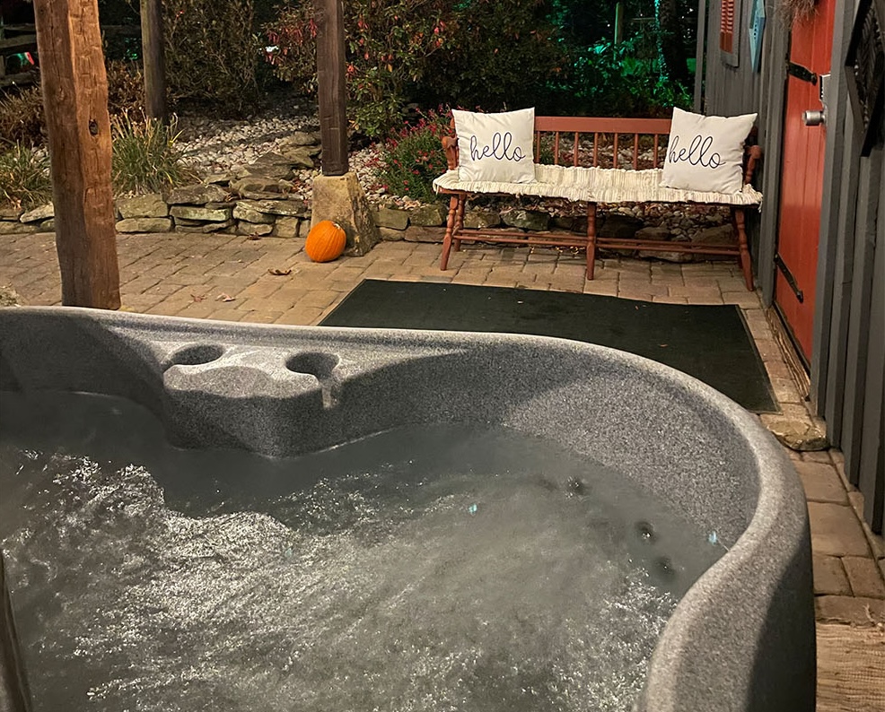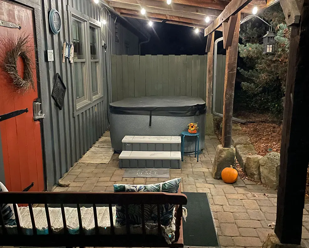 - Relaxation & leisure – Spacious en-suite bath with whirlpool/shower combo and electric radiant fireplace, and access to the outside hot tub for 2 on the Harvest House patio