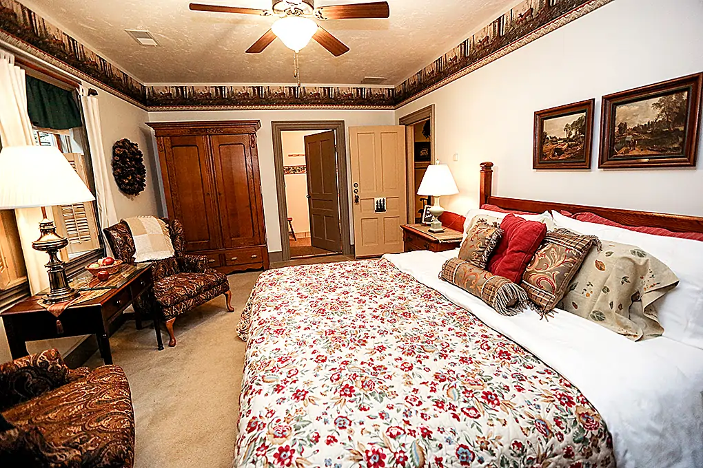 Step into nature-inspired tranquility in The Woodlands Room at Deer Creek Winery’s Harvest House. Overlooking graceful hemlocks, mountain laurel, ferns, and ivy, this picturesque guestroom invites you to slow down and savor the quiet beauty of Pennsylvania wine country.