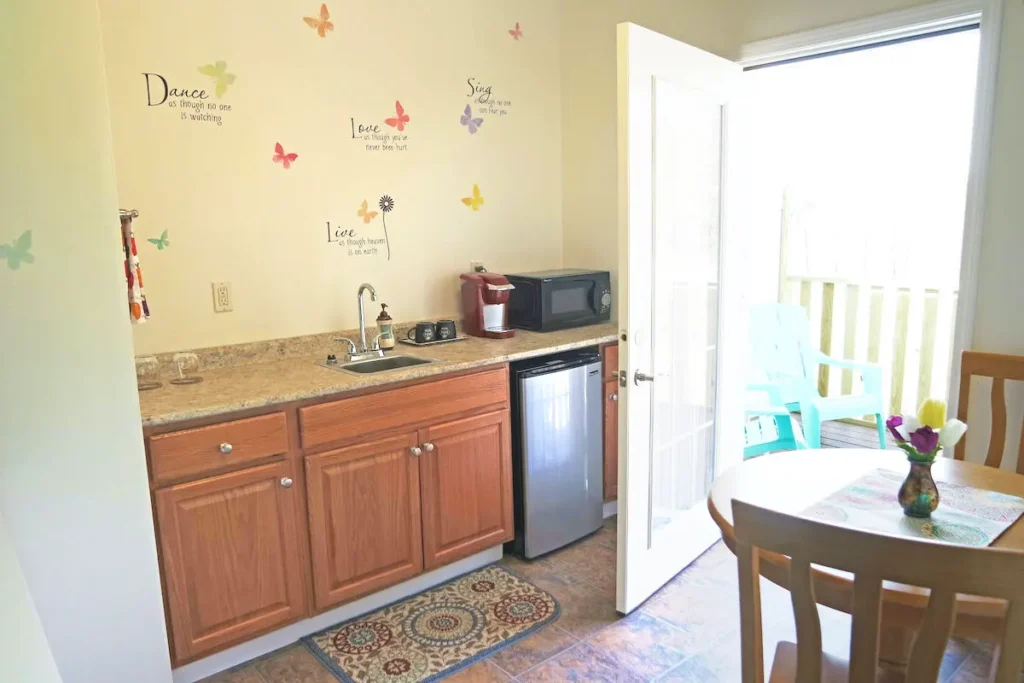 - Modern conveniences – Wi-Fi, TV, dining table and chairs, plus a coffee maker, microwave, and refrigerator