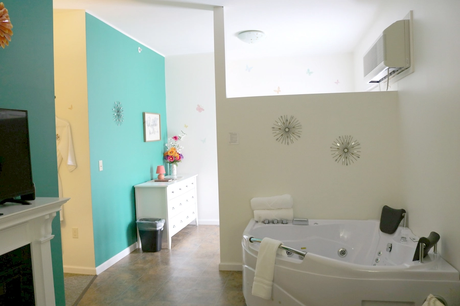 - Relaxation & romance – Private in-room Jacuzzi hot tub and scenic balcony views. Access to outdoor hot tub on The Manor porch.