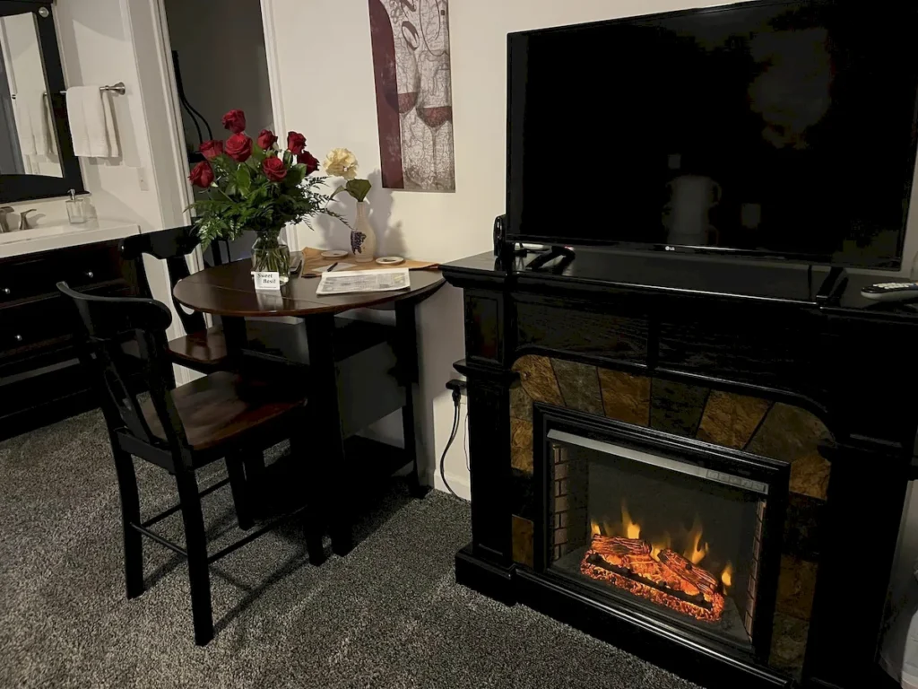- Romance & relaxation – Private Jacuzzi tub and cozy fireplace for the perfect couple’s retreat