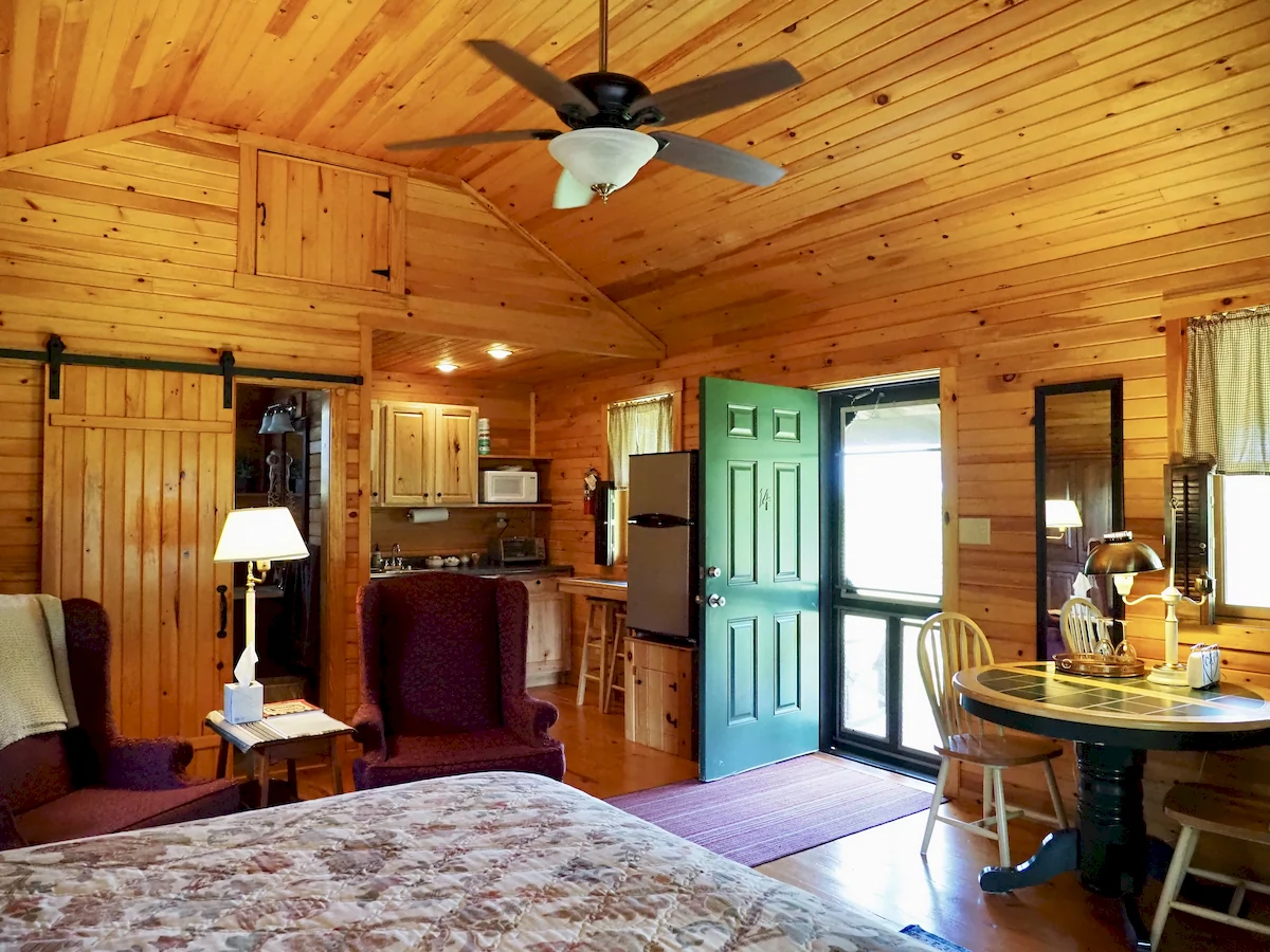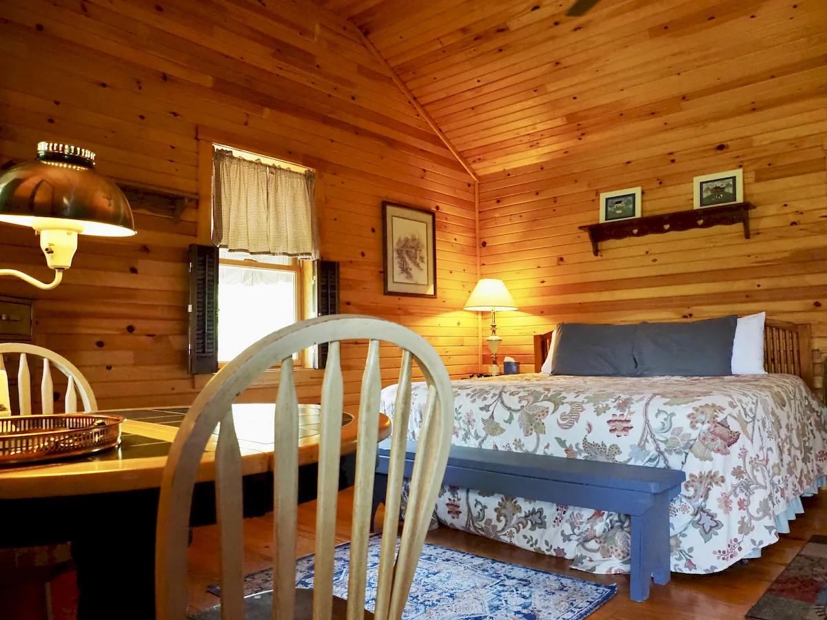 - Rustic comfort – King-sized bed, open-living layout, and cozy climate-controlled design